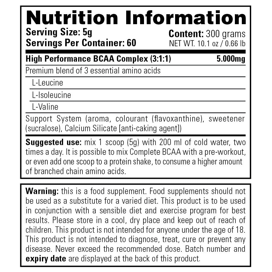 Origin: Complete BCAA is distributed and composed by: Stacker2 Europe BV, PO Box 5072, 6130 PB, Sittard (NL).