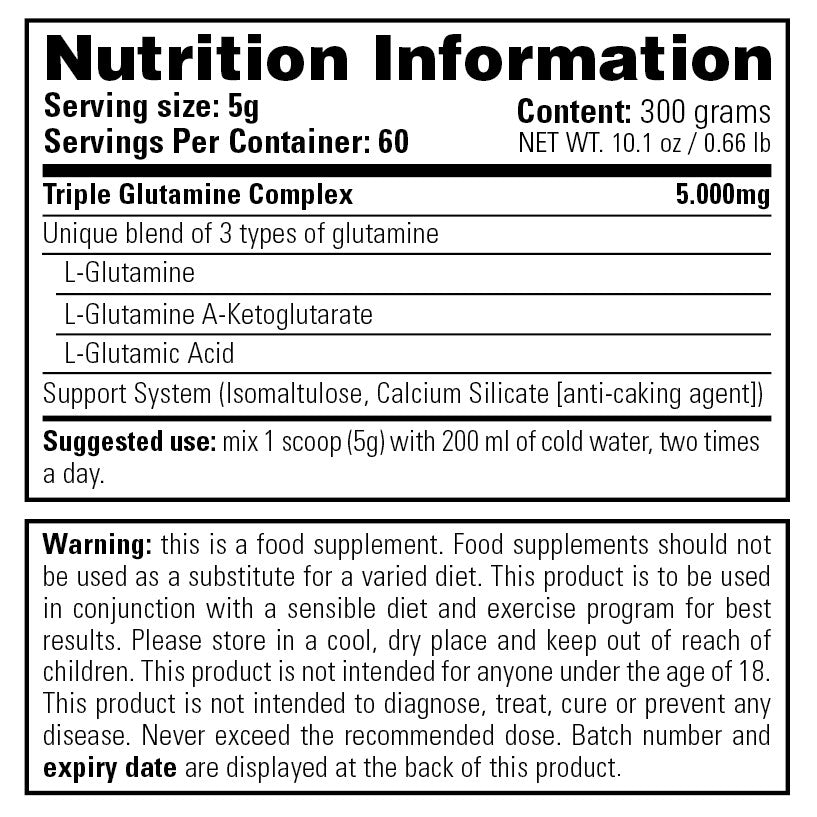 Complete Glutamine bevat de puurste vormen en de hoogste topkwaliteit glutamine. Een unieke combinatie van L-Glutamine, L-Glutamine Alpha-Ketogluteraat en L-Glutaminezuur, zoals nog nooit eerder gebruikt binnen de sportvoeding. Complete Glutamine lost volledig op en heeft een neutrale smaak. Het poeder wordt efficiënt en snel opgenomen door jouw lichaam.